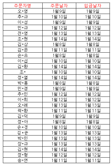 ±ÝÀÏ ÇØ¿î¹è¼ÛÃâ¹ßµÈ °í°´´Ô/ȸ¿ø´Ôµé ÁÖ¹®ÀÚ¸í Á¤º¸ ¿Ã·Áµå¸³´Ï´Ù.